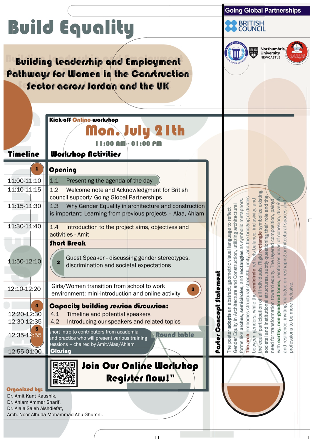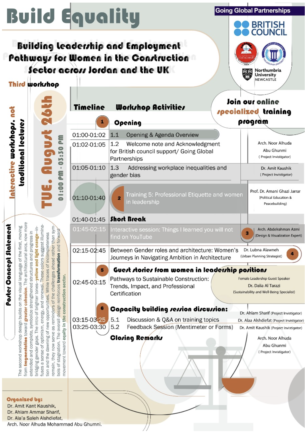 BUILD Equality is a British Council-funded partnership between Northumbria University (UK), Hashemite University, and Philadelphia University (Jordan). Through 2025, we are delivering transformative workshops, training activities, and peer-learning opportunities to help shape a more inclusive future for the construction sector.